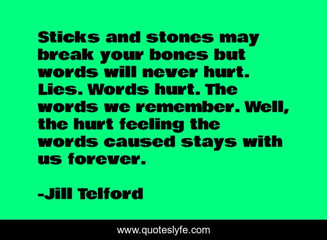"Jill Telford Quotes." Quoteslyfe.com, 2025. Mon. 08 Dec. 2025. <https://www.quoteslyfe.com/quote/Sticks-and-stones-may-break-your-bones-113074>.