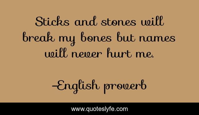 This page presents the quote "Sticks and stones will break my bones but names will never hurt me.". Author of this quote is English proverb. .