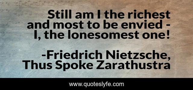 This page presents the quote "Still am I the richest and most to be envied - I, the lonesomest one!". Author of this quote is Friedrich Nietzsche, Thus Spoke Zarathustra. .