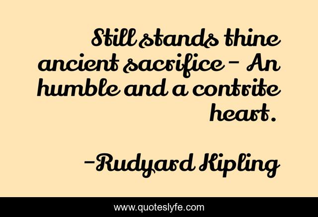 This page presents the quote "Still stands thine ancient sacrifice - An humble and a contrite heart.". Author of this quote is Rudyard Kipling. .