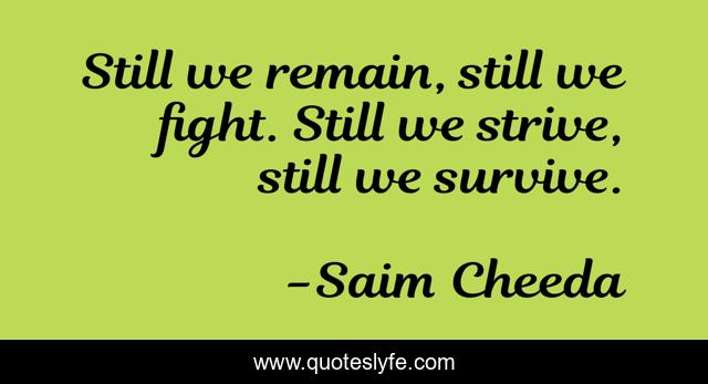 "Saim Cheeda Quotes." Quoteslyfe.com, 2025. Tue. 09 Dec. 2025. <https://www.quoteslyfe.com/quote/Still-we-remain-still-we-fight-Still-220369>.