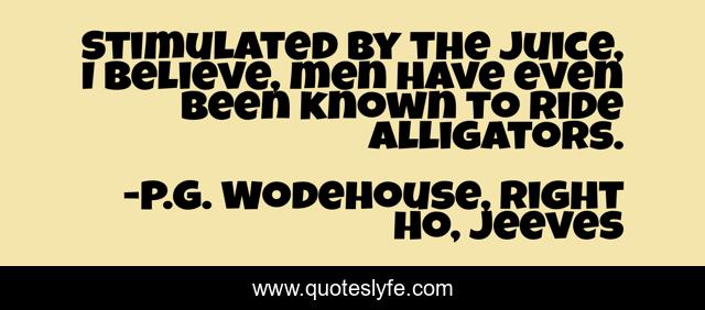 This page presents the quote "Stimulated by the juice, I believe, men have even been known to ride alligators.". Author of this quote is P.G. Wodehouse, Right Ho, Jeeves. This quote is about alligators, men, love, affection,.