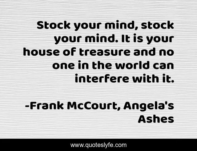 "Frank McCourt, Angela's Ashes Quotes." Quoteslyfe.com, 2025. Tue. 09 Dec. 2025. <https://www.quoteslyfe.com/quote/Stock-your-mind-stock-your-mind-It-238451>.