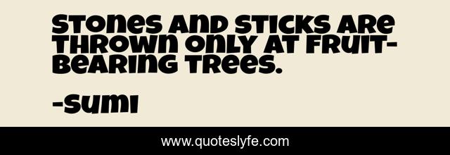 "Sumi Quotes." Quoteslyfe.com, 2025. Sat. 06 Dec. 2025. <https://www.quoteslyfe.com/quote/Stones-and-sticks-are-thrown-only-at-185563>.