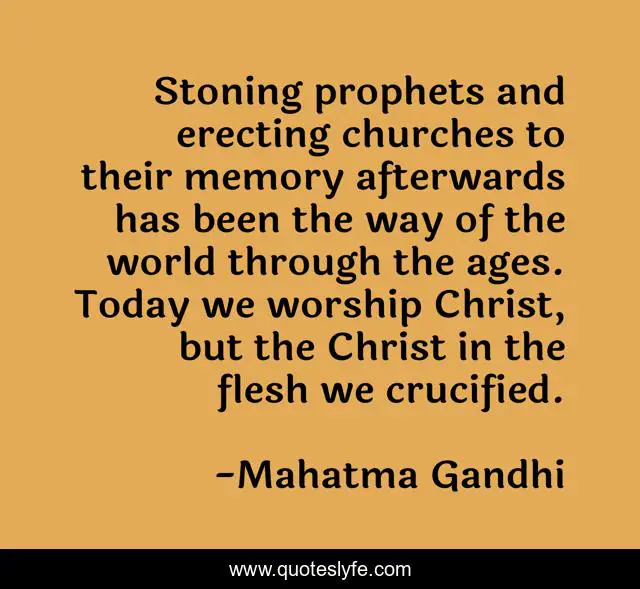 This page presents the quote "Stoning prophets and erecting churches to their memory afterwards has been the way of the world through the ages. Today we worship Christ, but the Christ in the flesh we crucified.". Author of this quote is Mahatma Gandhi. .