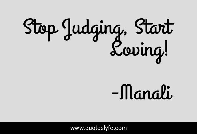 "Manali Quotes." Quoteslyfe.com, 2025. Fri. 05 Dec. 2025. <https://www.quoteslyfe.com/quote/Stop-Judging-Start-Loving-71707>.