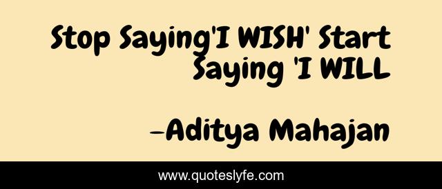 This page presents the quote "Stop Saying'I WISH' Start Saying 'I WILL". Author of this quote is Aditya Mahajan. .