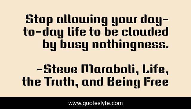 This page presents the quote "Stop allowing your day-to-day life to be clouded by busy nothingness.". Author of this quote is Steve Maraboli, Life, the Truth, and Being Free. This quote is about life, success, positive, motivational, confidence, intent, purpose, action, optimistic,.