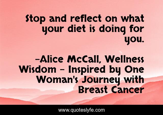 "Alice McCall, Wellness Wisdom - Inspired by One Woman's Journey with Breast Cancer Quotes." Quoteslyfe.com, 2025. Sat. 06 Dec. 2025. <https://www.quoteslyfe.com/quote/Stop-and-reflect-on-what-your-diet-147500>.