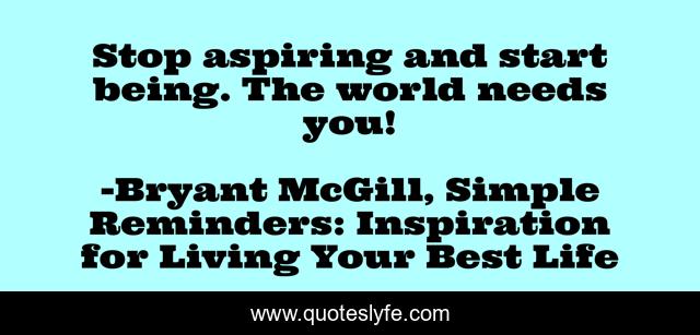 "Bryant McGill, Simple Reminders: Inspiration for Living Your Best Life Quotes." Quoteslyfe.com, 2025. Fri. 05 Dec. 2025. <https://www.quoteslyfe.com/quote/Stop-aspiring-and-start-being-The-world-247486>.