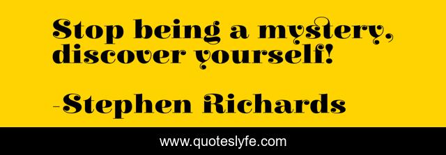 "Stephen Richards Quotes." Quoteslyfe.com, 2025. Mon. 08 Dec. 2025. <https://www.quoteslyfe.com/quote/Stop-being-a-mystery-discover-yourself-146590>.