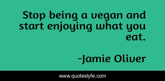 This page presents the quote "Stop being a vegan and start enjoying what you eat.". Author of this quote is Jamie Oliver. This quote is about start, stop,.