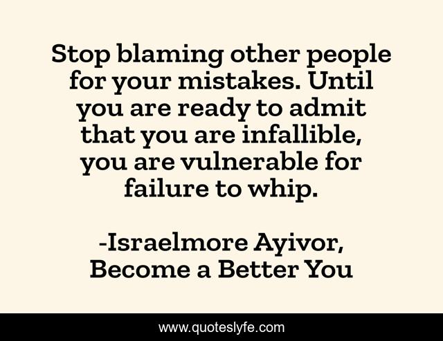 "Israelmore Ayivor, Become a Better You Quotes." Quoteslyfe.com, 2025. Mon. 08 Dec. 2025. <https://www.quoteslyfe.com/quote/Stop-blaming-other-people-for-your-mistakes-51881>.