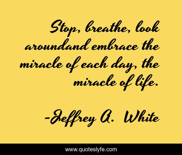 "Jeffrey A. White Quotes." Quoteslyfe.com, 2025. Sat. 06 Dec. 2025. <https://www.quoteslyfe.com/quote/Stop-breathe-look-aroundand-embrace-the-miracle-185773>.