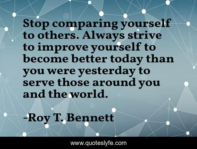 "Roy T. Bennett Quotes." Quoteslyfe.com, 2025. Fri. 05 Dec. 2025. <https://www.quoteslyfe.com/quote/Stop-comparing-yourself-to-others-Always-strive-3412>.