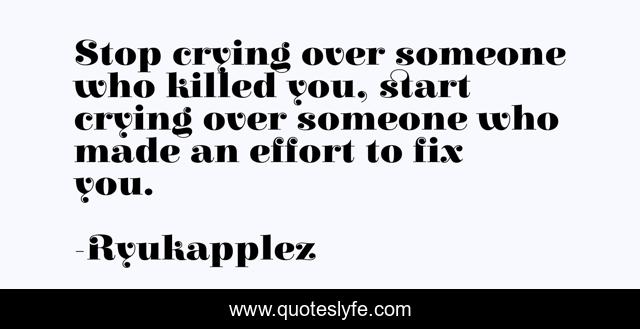 This page presents the quote "Stop crying over someone who killed you, start crying over someone who made an effort to fix you.". Author of this quote is Ryukapplez. .