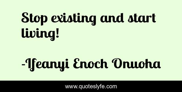 "Ifeanyi Enoch Onuoha Quotes." Quoteslyfe.com, 2025. Mon. 08 Dec. 2025. <https://www.quoteslyfe.com/quote/Stop-existing-and-start-living-105799>.