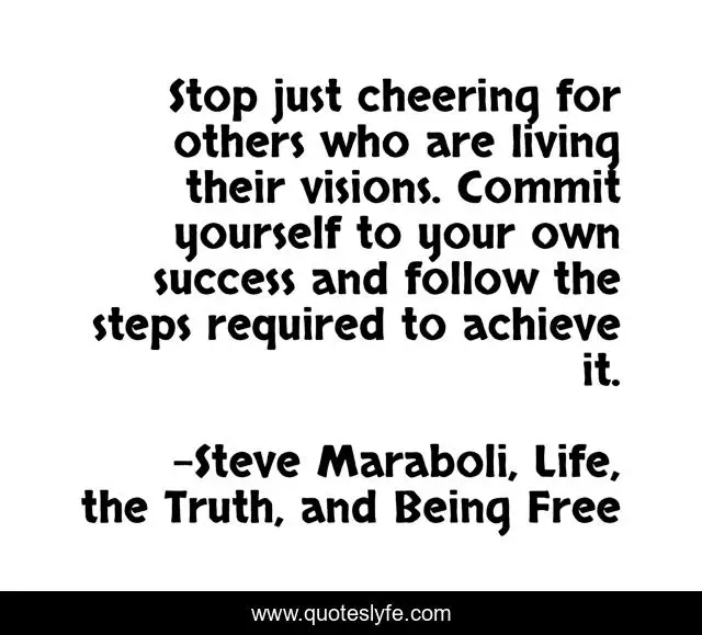 This page presents the quote "Stop just cheering for others who are living their visions. Commit yourself to your own success and follow the steps required to achieve it.". Author of this quote is Steve Maraboli, Life, the Truth, and Being Free. This quote is about life, success, achievement, inspirational, action, enthusiasm, dreams, change,.