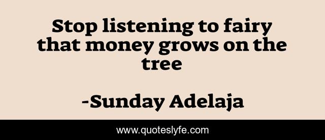 This page presents the quote "Stop listening to fairy that money grows on the tree". Author of this quote is Sunday Adelaja. This quote is about prosperity, wealth, success, riches, tree, labor, stop, listening, money,.