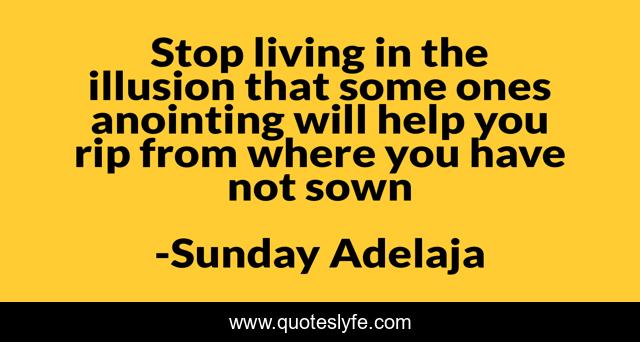 This page presents the quote "Stop living in the illusion that some ones anointing will help you rip from where you have not sown". Author of this quote is Sunday Adelaja. This quote is about illusion, illusions,.