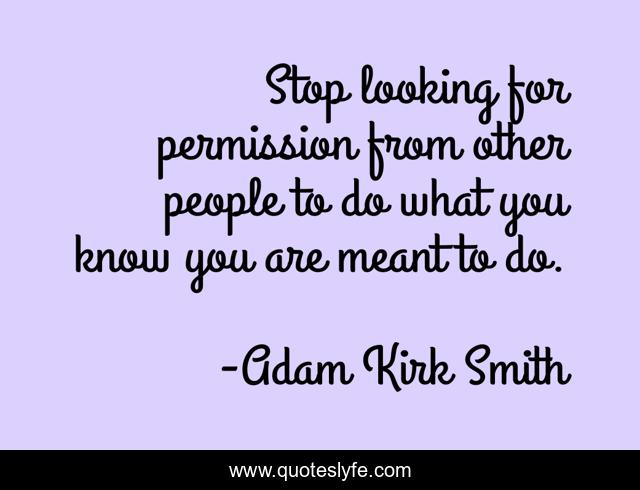 "Adam Kirk Smith Quotes." Quoteslyfe.com, 2025. Fri. 05 Dec. 2025. <https://www.quoteslyfe.com/quote/Stop-looking-for-permission-from-other-people-72083>.