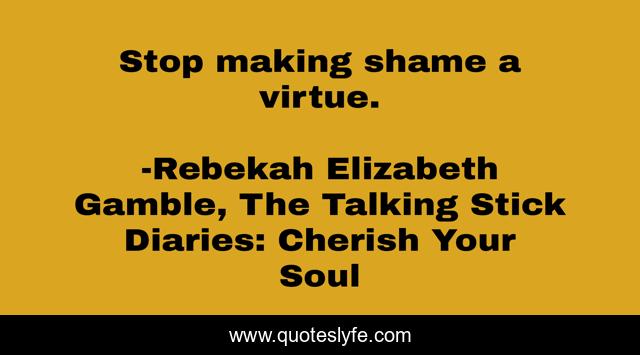 "Rebekah Elizabeth Gamble, The Talking Stick Diaries: Cherish Your Soul Quotes." Quoteslyfe.com, 2025. Sun. 07 Dec. 2025. <https://www.quoteslyfe.com/quote/Stop-making-shame-a-virtue-204961>.