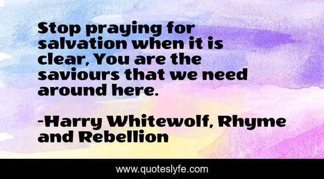 "Harry Whitewolf, Rhyme and Rebellion Quotes." Quoteslyfe.com, 2025. Fri. 05 Dec. 2025. <https://www.quoteslyfe.com/quote/Stop-praying-for-salvation-when-it-is-73382>.