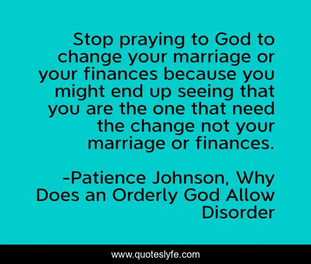 "Patience Johnson, Why Does an Orderly God Allow Disorder Quotes." Quoteslyfe.com, 2025. Fri. 05 Dec. 2025. <https://www.quoteslyfe.com/quote/Stop-praying-to-God-to-change-your-34003>.