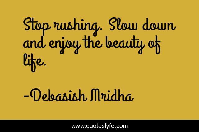 "Debasish Mridha Quotes." Quoteslyfe.com, 2025. Fri. 05 Dec. 2025. <https://www.quoteslyfe.com/quote/Stop-rushing-Slow-down-and-enjoy-the-74740>.