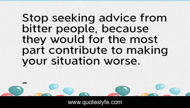 " Quotes." Quoteslyfe.com, 2025. Mon. 08 Dec. 2025. <https://www.quoteslyfe.com/quote/Stop-seeking-advice-from-bitter-people-because-170714>.