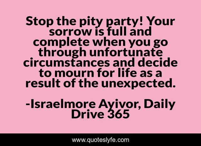 "Israelmore Ayivor, Daily Drive 365 Quotes." Quoteslyfe.com, 2025. Mon. 08 Dec. 2025. <https://www.quoteslyfe.com/quote/Stop-the-pity-party-Your-sorrow-is-129228>.