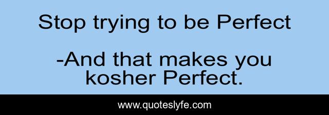 This page presents the quote "Stop trying to be Perfect". Author of this quote is And that makes you kosher Perfect.. .
