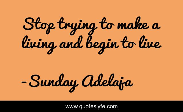 This page presents the quote "Stop trying to make a living and begin to live". Author of this quote is Sunday Adelaja. This quote is about love, people, money, principles, employment, worship, celebrating-people, destiny, service,.