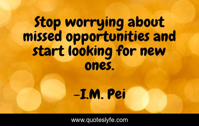 "I.M. Pei Quotes." Quoteslyfe.com, 2025. Sat. 06 Dec. 2025. <https://www.quoteslyfe.com/quote/Stop-worrying-about-missed-opportunities-and-start-212443>.