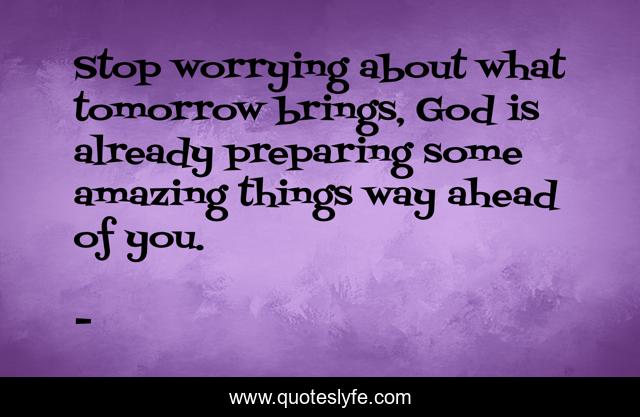 This page presents the quote "Stop worrying about what tomorrow brings, God is already preparing some amazing things way ahead of you.". Author of this quote is . This quote is about edmond-mbiaka, stop-worrying-about-tomorrow,.