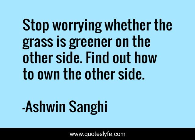 This page presents the quote "Stop worrying whether the grass is greener on the other side. Find out how to own the other side.". Author of this quote is Ashwin Sanghi. .