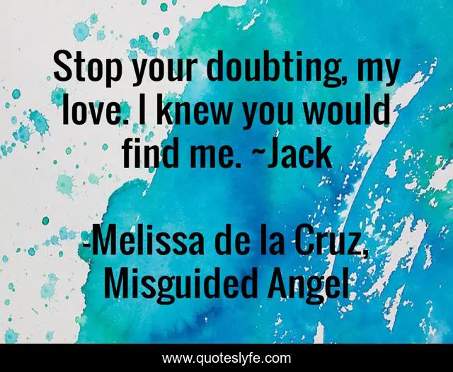 "Melissa de la Cruz, Misguided Angel Quotes." Quoteslyfe.com, 2025. Fri. 05 Dec. 2025. <https://www.quoteslyfe.com/quote/Stop-your-doubting-my-love-I-knew-190208>.