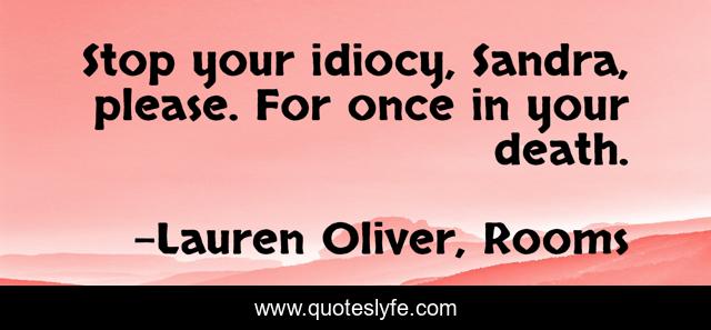 "Lauren Oliver, Rooms Quotes." Quoteslyfe.com, 2025. Fri. 05 Dec. 2025. <https://www.quoteslyfe.com/quote/Stop-your-idiocy-Sandra-please-For-once-205643>.