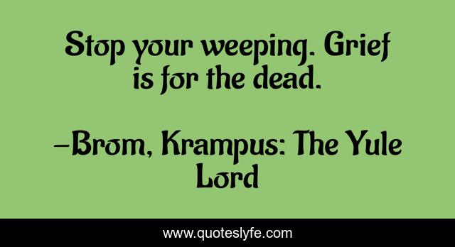 This page presents the quote "Stop your weeping. Grief is for the dead.". Author of this quote is Brom, Krampus: The Yule Lord. This quote is about grief, death,.