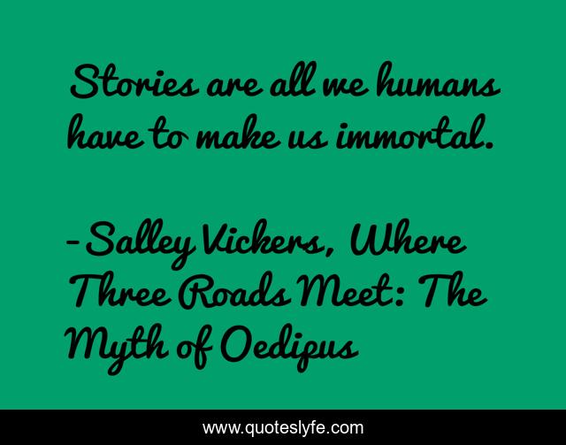 This page presents the quote "Stories are all we humans have to make us immortal.". Author of this quote is Salley Vickers, Where Three Roads Meet: The Myth of Oedipus. This quote is about immortality, stories, humanity, mortality,.