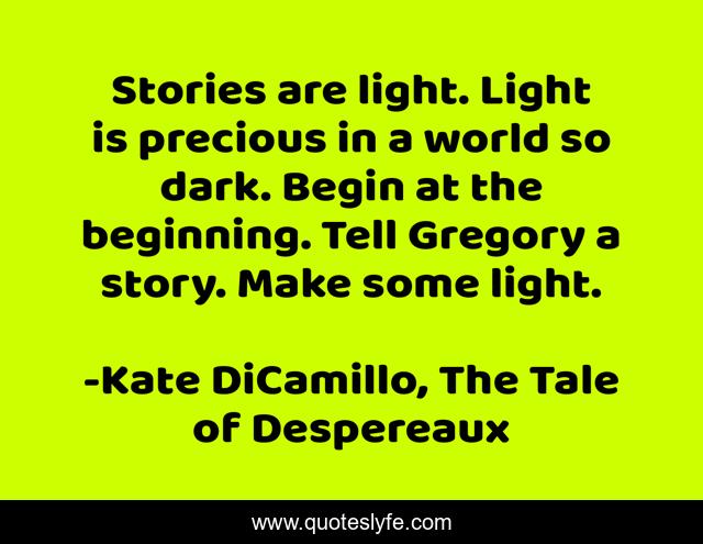 "Kate DiCamillo, The Tale of Despereaux Quotes." Quoteslyfe.com, 2025. Sat. 06 Dec. 2025. <https://www.quoteslyfe.com/quote/Stories-are-light-Light-is-precious-in-118220>.