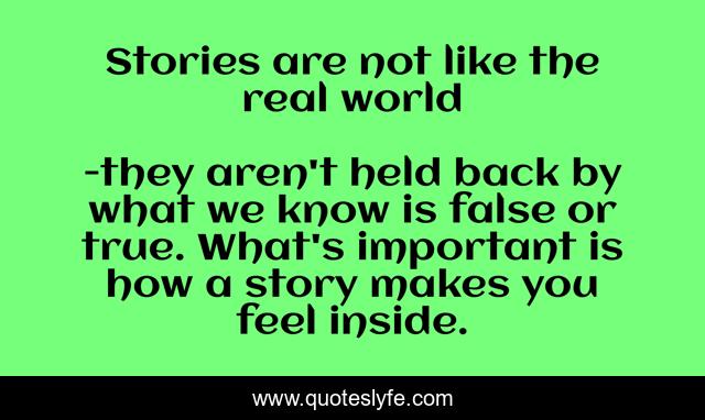 "they aren't held back by what we know is false or true. What's important is how a story makes you feel inside. Quotes." Quoteslyfe.com, 2025. Fri. 05 Dec. 2025. <https://www.quoteslyfe.com/quote/Stories-are-not-like-the-real-world-10545>.