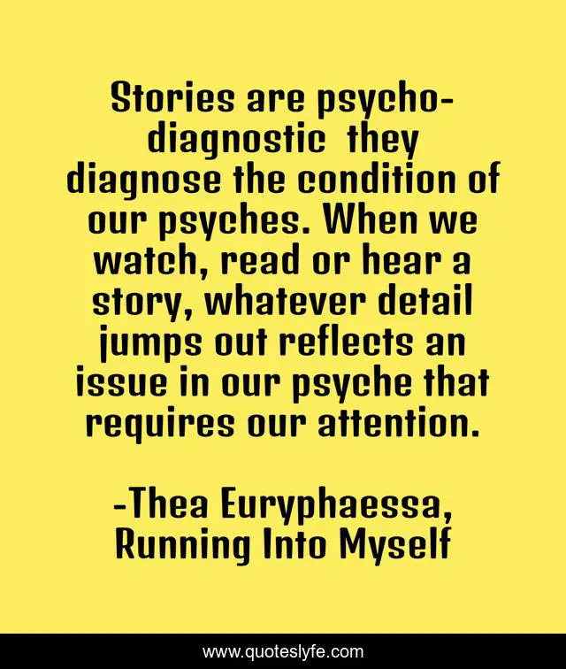 "Thea Euryphaessa, Running Into Myself Quotes." Quoteslyfe.com, 2025. Sat. 06 Dec. 2025. <https://www.quoteslyfe.com/quote/Stories-are-psycho-diagnostic-they-diagnose-the-62856>.