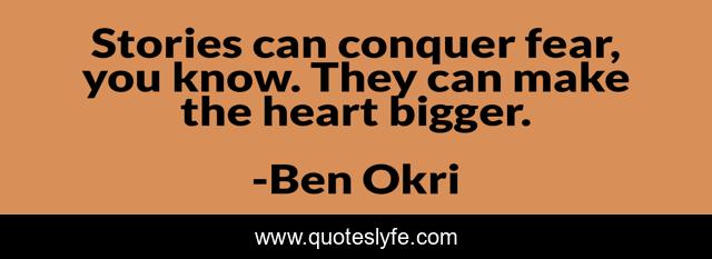 This page presents the quote "Stories can conquer fear, you know. They can make the heart bigger.". Author of this quote is Ben Okri. .