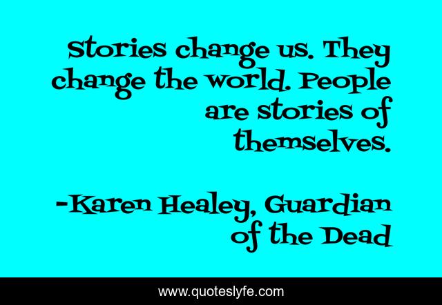 "Karen Healey, Guardian of the Dead Quotes." Quoteslyfe.com, 2025. Sun. 07 Dec. 2025. <https://www.quoteslyfe.com/quote/Stories-change-us-They-change-the-world-186208>.