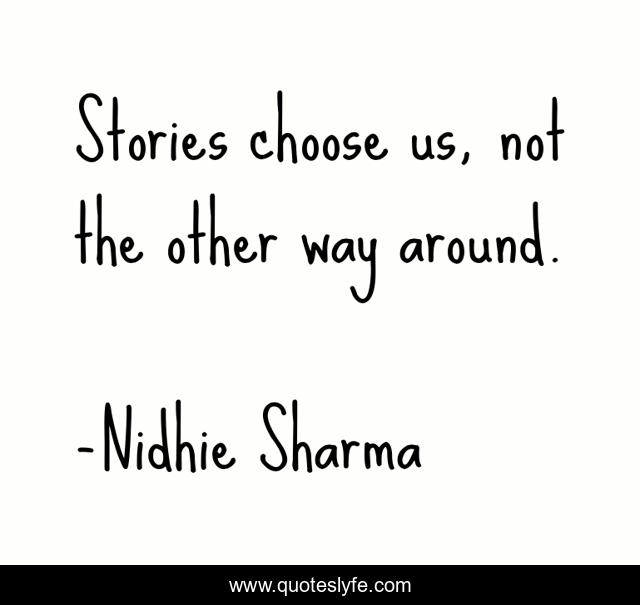 This page presents the quote "Stories choose us, not the other way around.". Author of this quote is Nidhie Sharma. This quote is about stories, authors,.