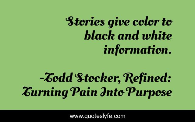 "Todd Stocker, Refined: Turning Pain Into Purpose Quotes." Quoteslyfe.com, 2025. Fri. 05 Dec. 2025. <https://www.quoteslyfe.com/quote/Stories-give-color-to-black-and-white-142474>.