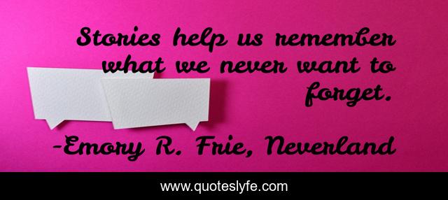 "Emory R. Frie, Neverland Quotes." Quoteslyfe.com, 2025. Mon. 08 Dec. 2025. <https://www.quoteslyfe.com/quote/Stories-help-us-remember-what-we-never-180576>.
