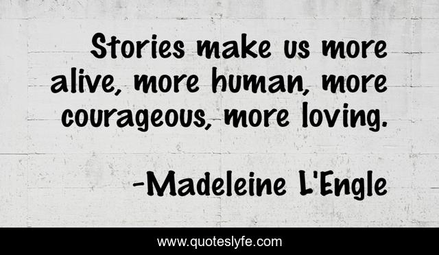 This page presents the quote "Stories make us more alive, more human, more courageous, more loving.". Author of this quote is Madeleine L'Engle. This quote is about love, courage, stories, affection, inspiration,.