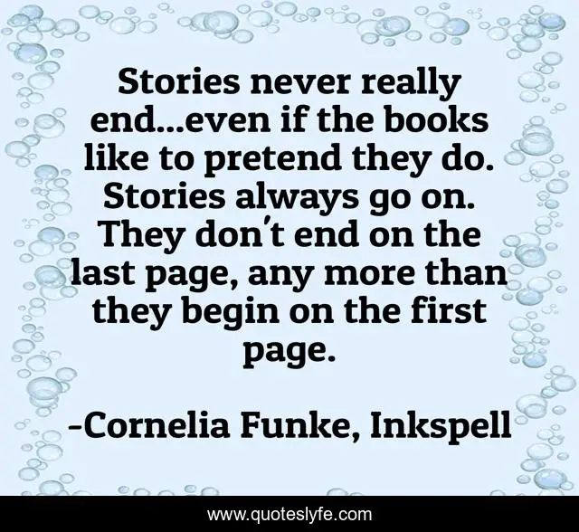 "Cornelia Funke, Inkspell Quotes." Quoteslyfe.com, 2025. Fri. 05 Dec. 2025. <https://www.quoteslyfe.com/quote/Stories-never-really-end-even-if-the-3756>.